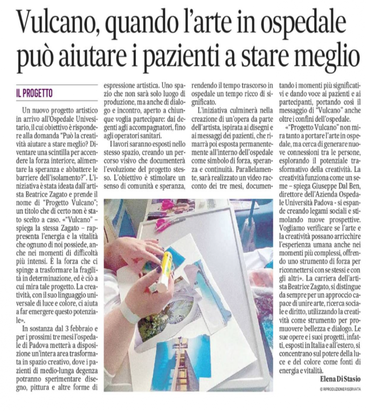 “Progetto Vulcano” non mira tanto a portare l’ arte in ospedale, ma cerca di generare nuove connessioni tra le persone, esplorando il potenziale trasformativo della creatività“, spiega Giuseppe Dal Ben, Direttore AOUP.